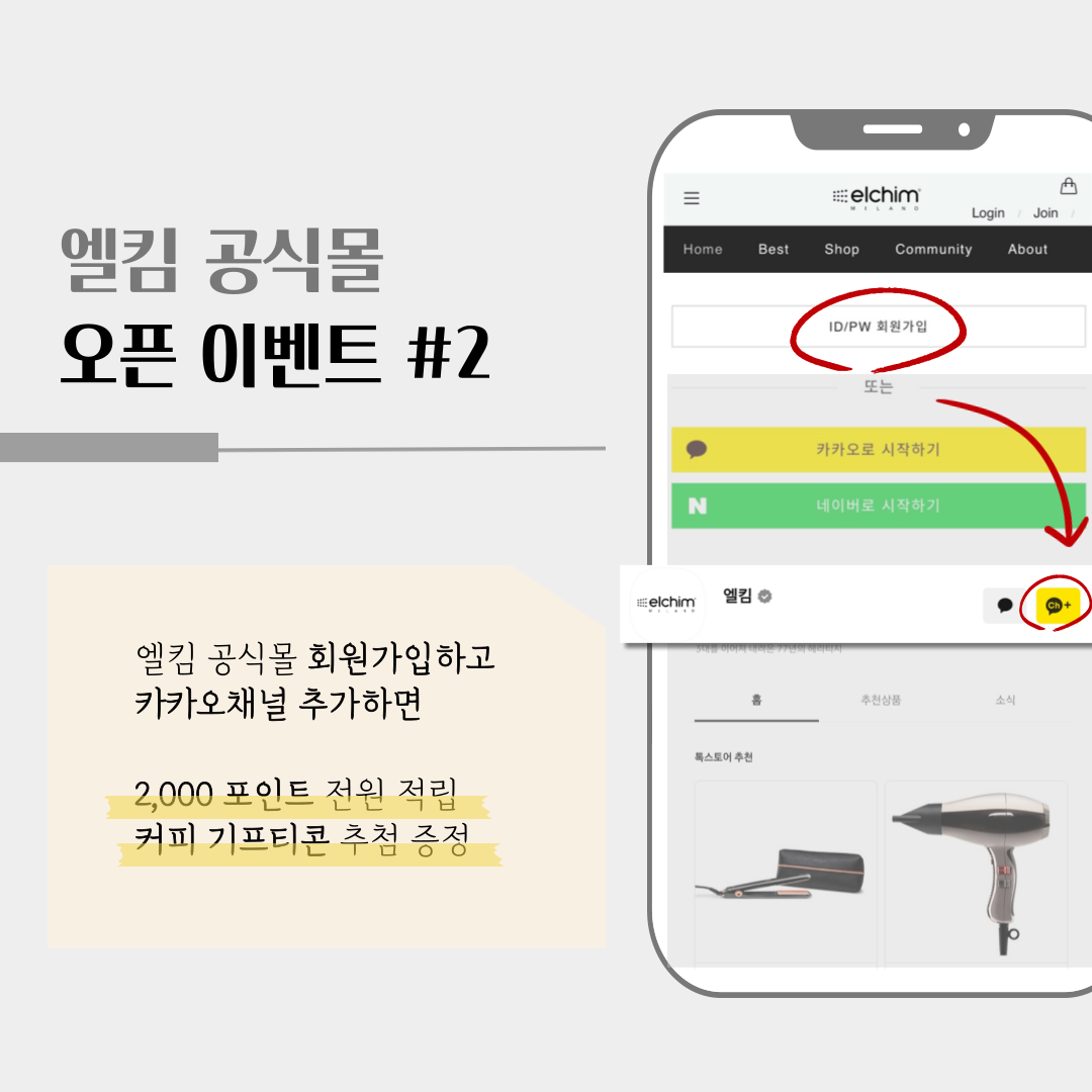 엘킴 공식몰에서 더욱 빵빵한 혜택으로 만나요!
